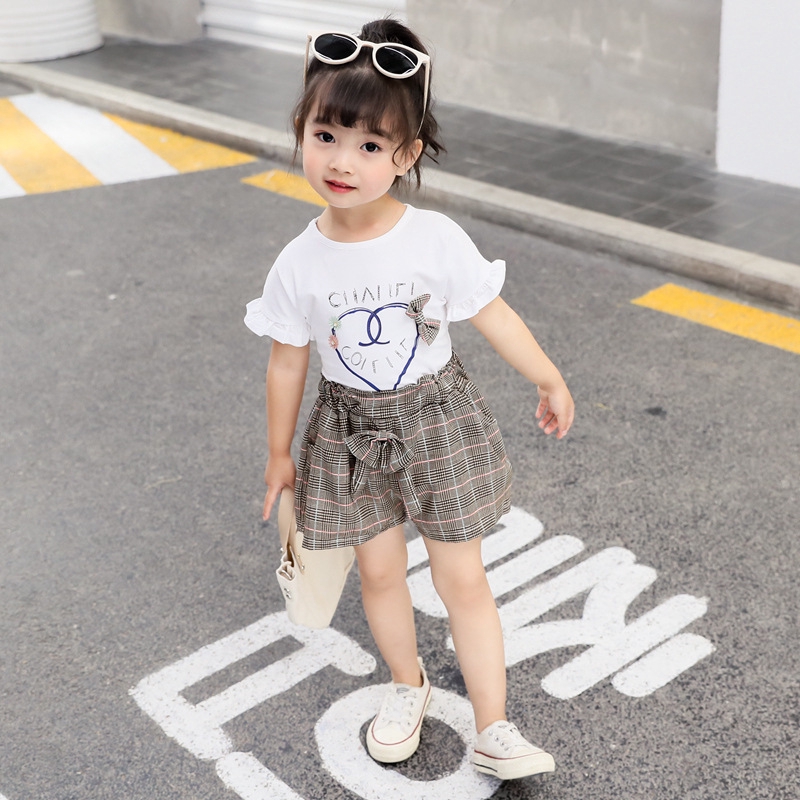 Korea Style Kids Girls Fashion Summer White T Shirt Chic Design Plaid Skirt 2pc Ebay