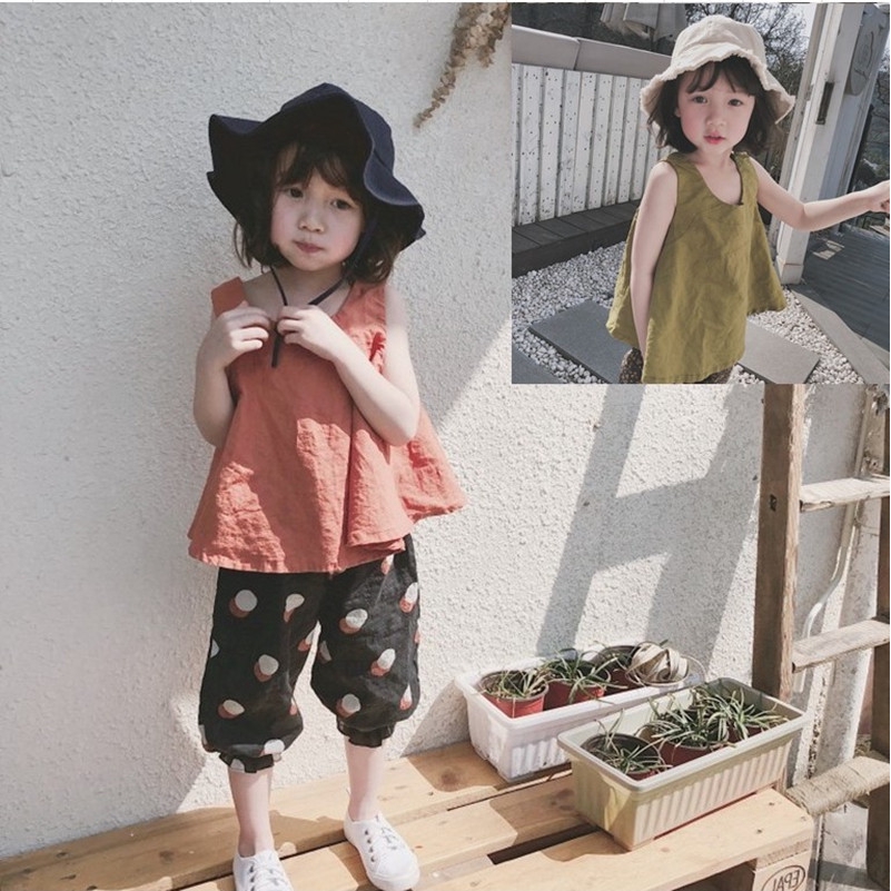Summer Kids Girls Korean Style Sleeveless Cltothing Set Shopee Indonesia
